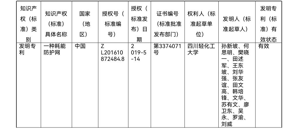 四、主要知識產權和標準規范目錄(不超過10件)