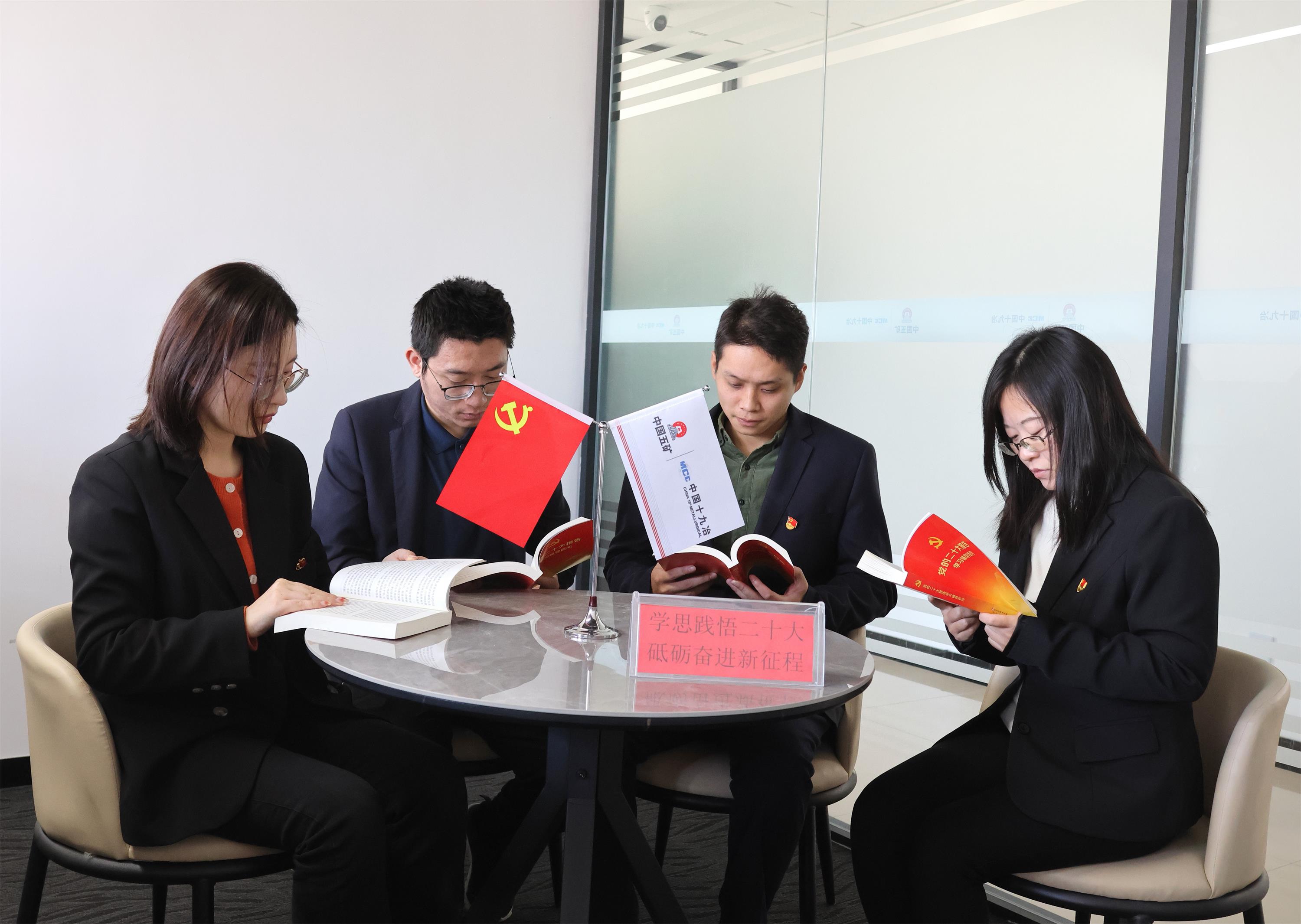 在小組學習會上,各支部黨員分部室、分系統就近“組團”,組成“圓桌學習小組”,參與五礦網上黨校開展的黨的二十大精神專題宣講直播活動,認真聆聽了中國五礦集團黨組書記、董事長翁祖亮作的《全面學習、全面把握、全面落實黨的二十大精神,奮力打造具有全球競爭力的世界一流金屬礦產企業集團》的宣講報告。在直播學習結束后,各小組黨員紛紛立足各自工作崗位,圍繞報告精神開展交流研討并結合對《黨的二十大報告學習輔導百問》等黨建讀物的學習,進一步加深對如何理解黨的二十大的重要意義?如何理解黨的二十大的主題?如何理解黨的二十大報告提出的“三個務必”?等內容的認識與理解。