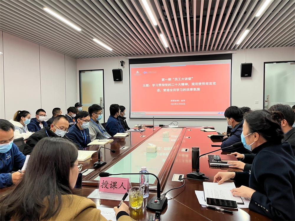 黨委書記結合黨的二十大報告對黨的建設新要求,立足實際工作中的細節,對“學習貫徹黨的二十大精神”和“黨建業務基礎知識提示”兩個板塊進行詳細講解。過程中主題鮮明引導廣大員工用好“黨言黨語”、扎實推動黨建工作規范化標準化,內容精彩翔實,現場不時響起熱烈的掌聲。最后,黨委書記對開展好“員工大講堂”提出要求,領導班子帶頭講、部門負責人必須講、邀請專家專題講、鼓勵青年及所有員工踴躍講,進一步示范帶動全公司形成濃厚的學習氛圍。